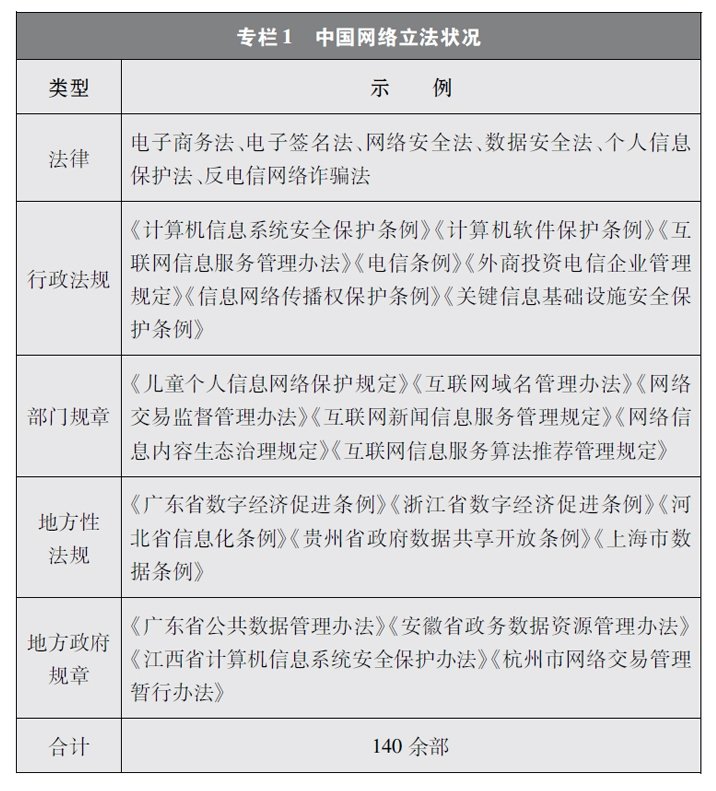 中國網(wǎng)絡(luò)立法隨著互聯(lián)網(wǎng)發(fā)展經(jīng)歷了從無到有、從少到多、由點(diǎn)到面、由面到體的發(fā)展過程。第一階段從1994年至1999年,是接入互聯(lián)網(wǎng)階段。上網(wǎng)用戶和設(shè)備數(shù)量穩(wěn)步增加。這一階段網(wǎng)絡(luò)立法主要聚焦于網(wǎng)絡(luò)基礎(chǔ)設(shè)施安全,即計(jì)算機(jī)系統(tǒng)安全和聯(lián)網(wǎng)安全。第二階段從2000年至2011年,是PC互聯(lián)網(wǎng)階段。隨著計(jì)算機(jī)數(shù)量逐步增加、上網(wǎng)資費(fèi)逐步降低,用戶上網(wǎng)日益普遍,網(wǎng)絡(luò)信息服務(wù)迅猛發(fā)展。這一階段網(wǎng)絡(luò)立法轉(zhuǎn)向側(cè)重網(wǎng)絡(luò)服務(wù)管理和內(nèi)容管理。第三階段從2012年至今,是移動互聯(lián)網(wǎng)階段。這一階段網(wǎng)絡(luò)立法逐步趨向全面涵蓋網(wǎng)絡(luò)信息服務(wù)、信息化發(fā)展、網(wǎng)絡(luò)安全保護(hù)等在內(nèi)的網(wǎng)絡(luò)綜合治理。在這一進(jìn)程中,中國制定出臺網(wǎng)絡(luò)領(lǐng)域立法140余部,基本形成了以憲法為根本,以法律、行政法規(guī)、部門規(guī)章和地方性法規(guī)、地方政府規(guī)章為依托,以傳統(tǒng)立法為基礎(chǔ),以網(wǎng)絡(luò)內(nèi)容建設(shè)與管理、網(wǎng)絡(luò)安全和信息化等網(wǎng)絡(luò)專門立法為主干的網(wǎng)絡(luò)法律體系,為網(wǎng)絡(luò)強(qiáng)國建設(shè)提供了堅(jiān)實(shí)的制度保障。